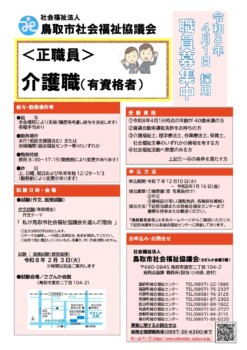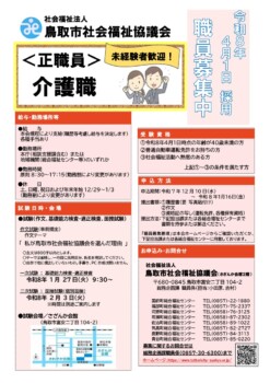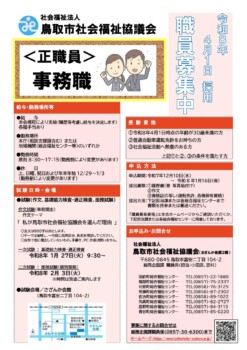 令和8年4月1日より採用の正職員(事務職・介護職)募集を開始します。