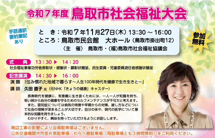 式典 13:30~ 記念講演 14:30~ (講師 久田 直子 氏)