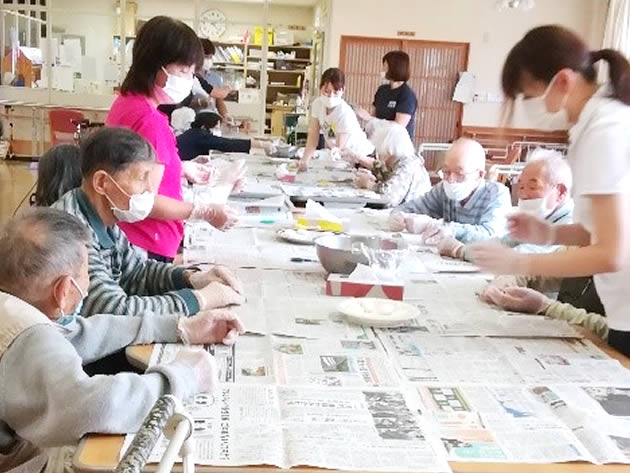 利用者が楽しく通えるようにレクリエーションや体操など様々なプログラムを用意しています。季節に応じた外出行事や手芸は大変喜ばれています。人と触れ合ったり、会話を楽しむことにより閉じこもりや孤立を防ぐことが出来ます。
