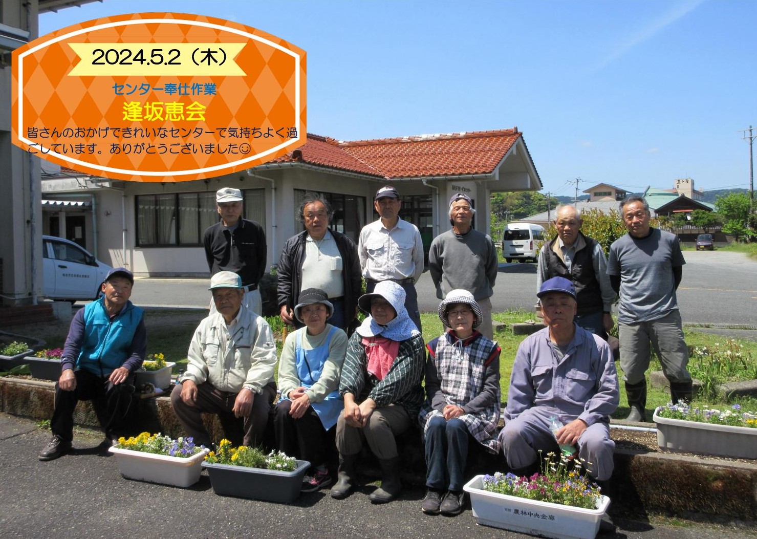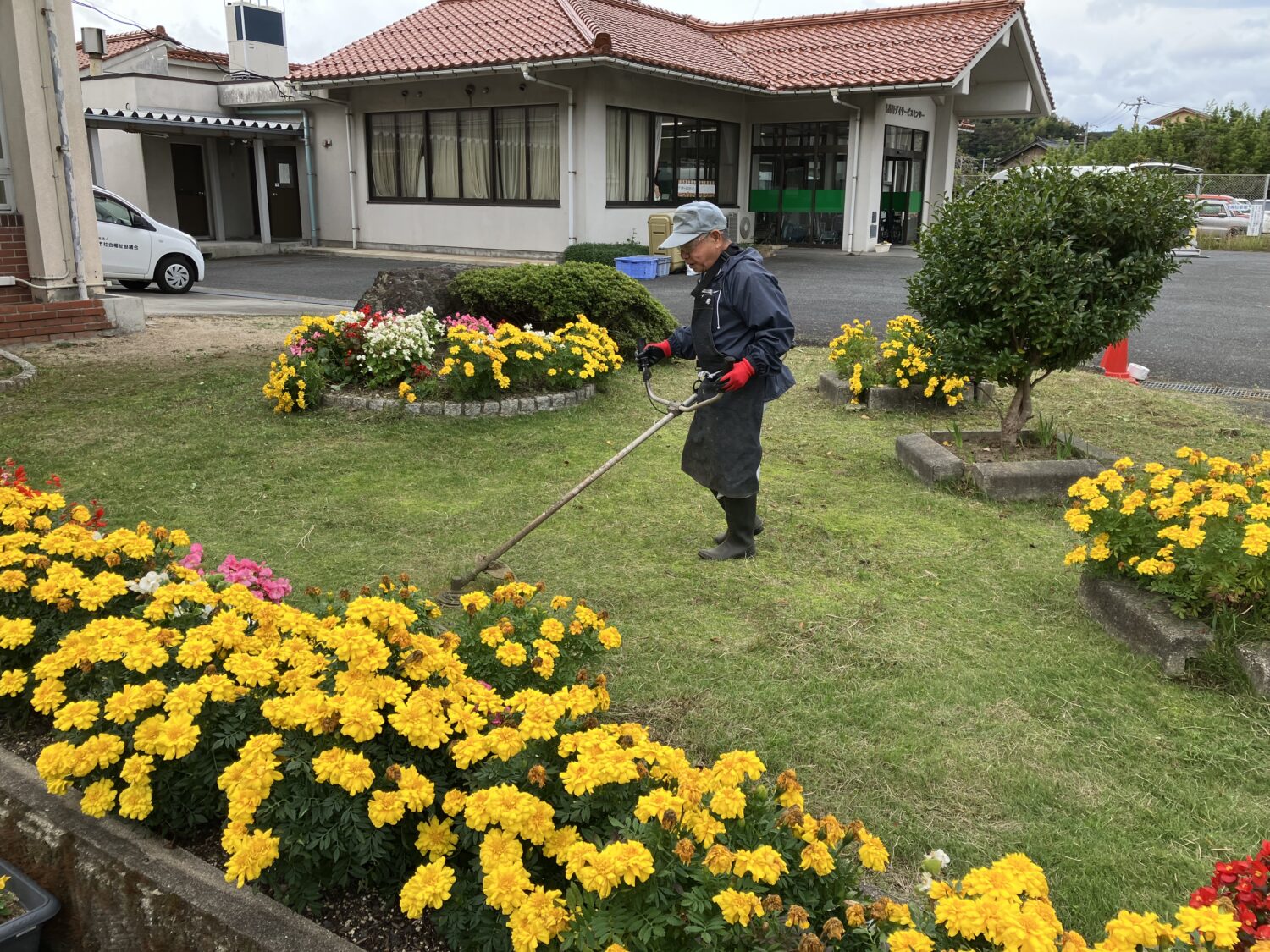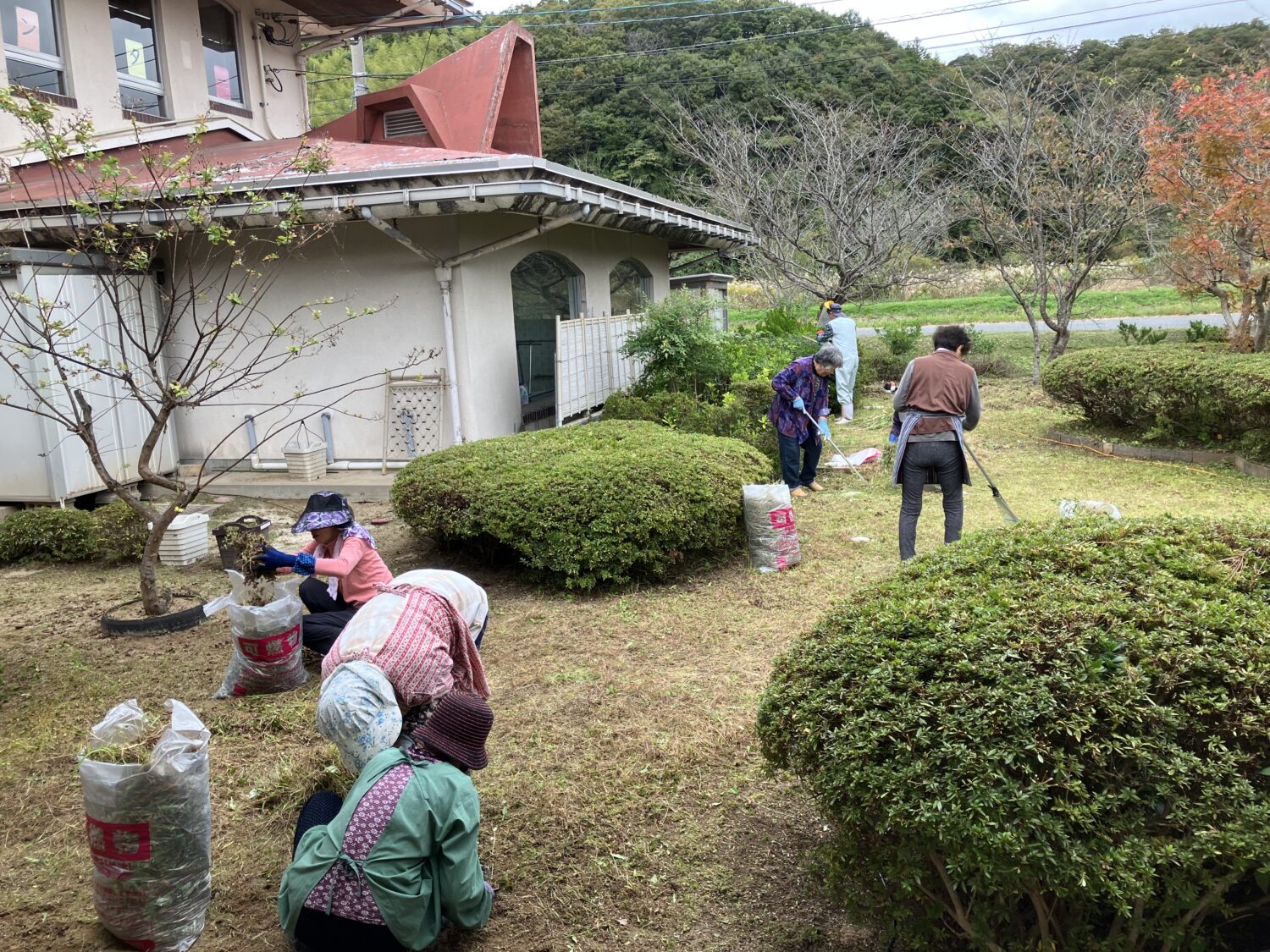 老人クラブ会員の皆さんが、ボランティアで老人福祉センター・デイサービスセンター周辺の除草作業や剪定等を行って下さいます。