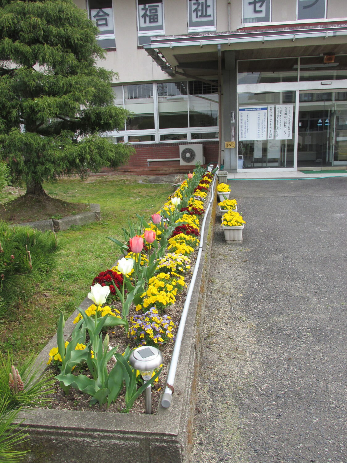 春と秋には花壇の植え替えをして、花でいっぱいになります。いつもきれいにしていただいて、ありがとうございます。