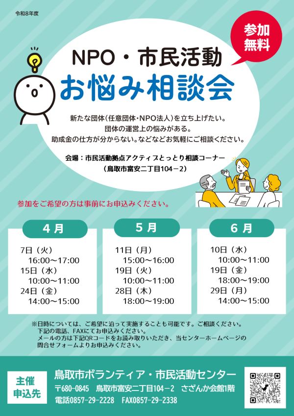 ●場所:市民活動拠点アクティブとっとり 相談コーナー